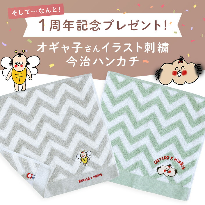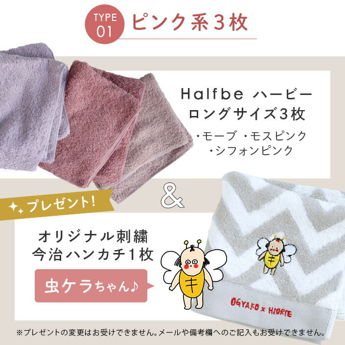 ピンクは虫ケラちゃん刺繍ハンドタオルがついてきて、