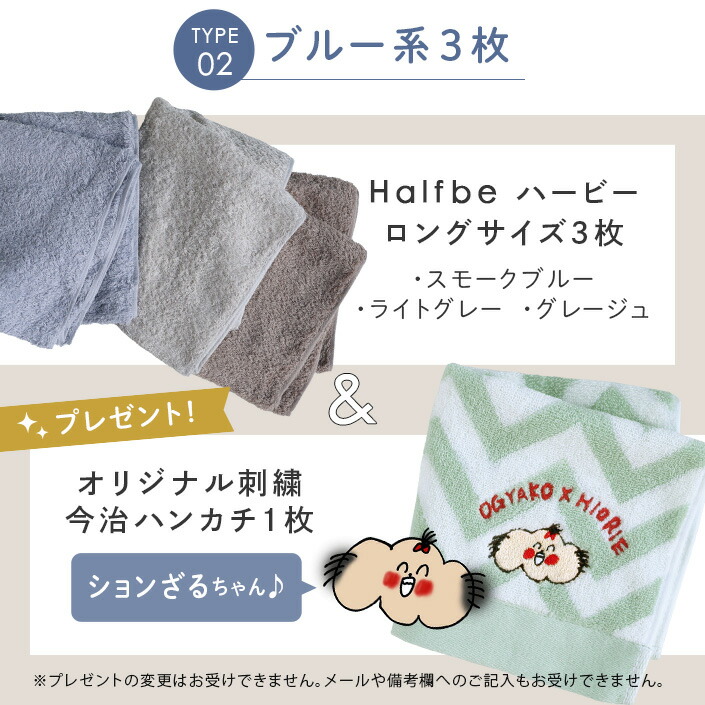 ブルーはションざる刺繍ハンドタオルがついてきます!
