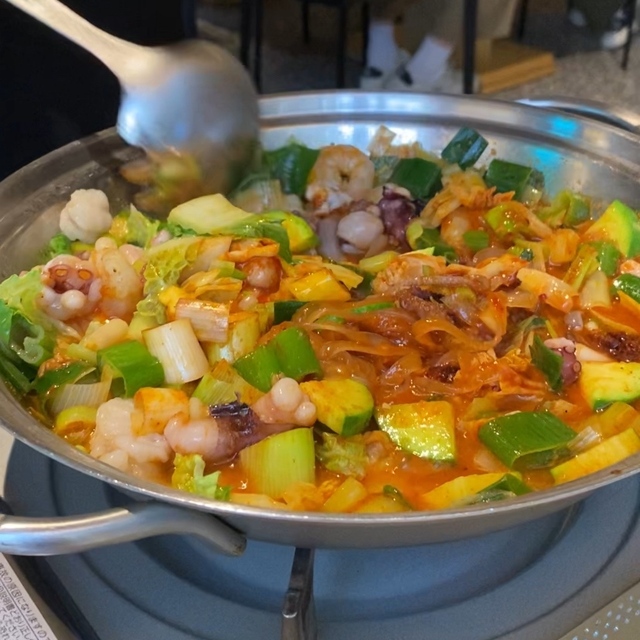 たっくさんのタコと海老と、ホルモンと、春雨を追加で投入したら