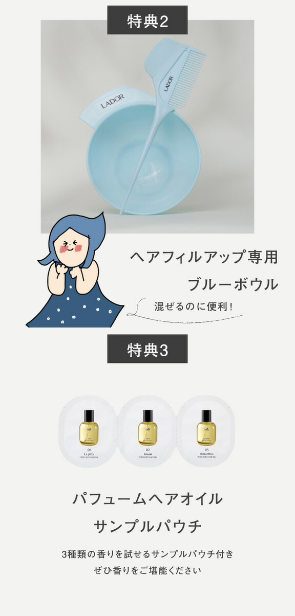 香水ヘアオイル、スペシャルトリートメント、ボウル&コーム、オリジナル巾着、試供品、これだけついて3591円送料無料。