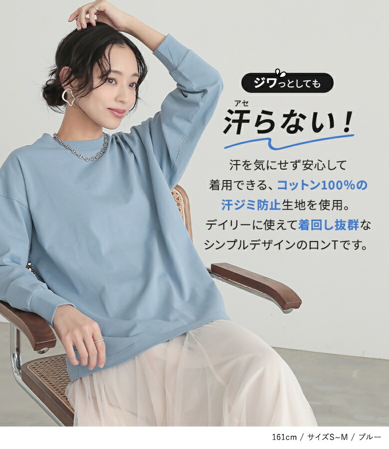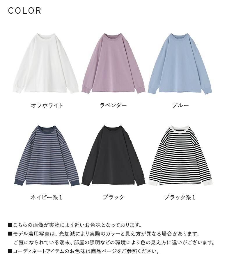 コットン100の着やすいさらっとした薄手のロンTなのでいろんな服装に使える~~!