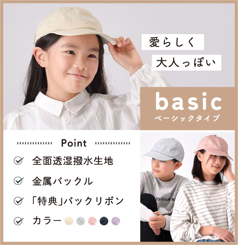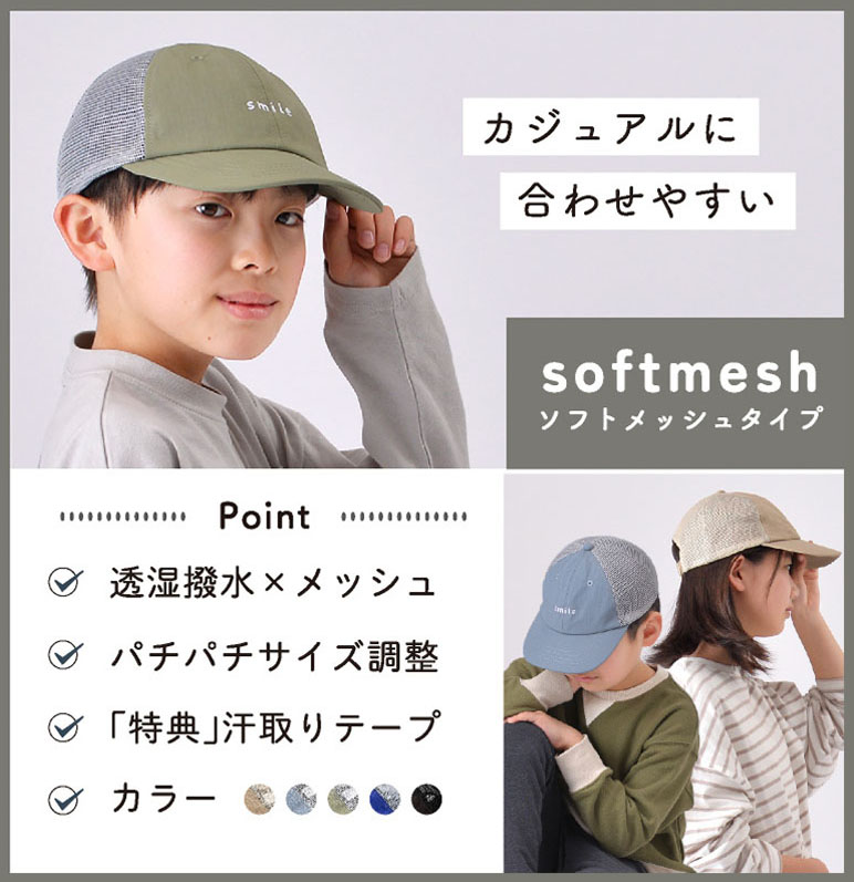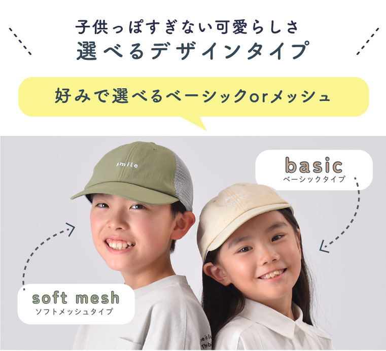 うしろがソフトメッシュになってるメッシュタイプと、全面同じ生地で作られているベーシックの2種類から選べるようになってるよ!
