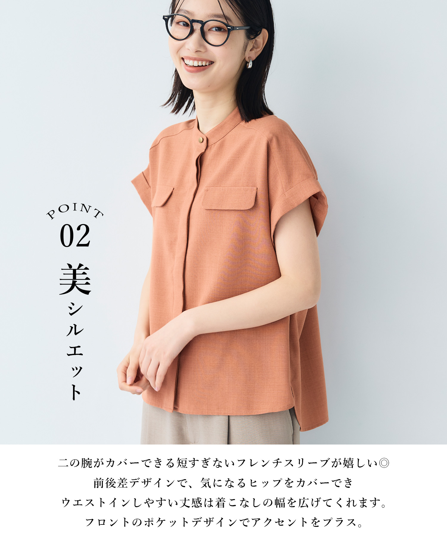 機能もたくさんで涼し気に着れるリネンライクブラウス。