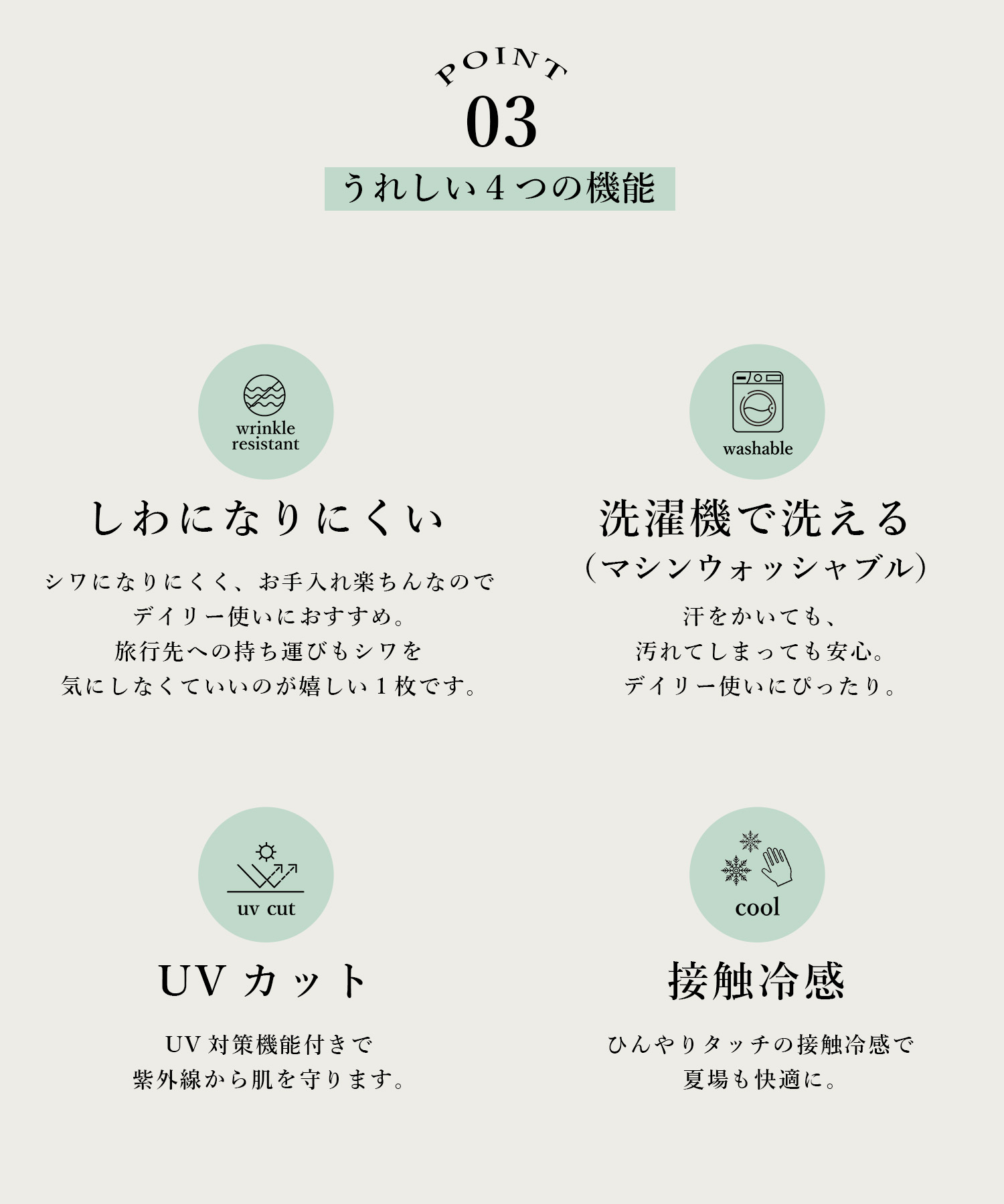 シワになりにくくて扱いやすい素材です。