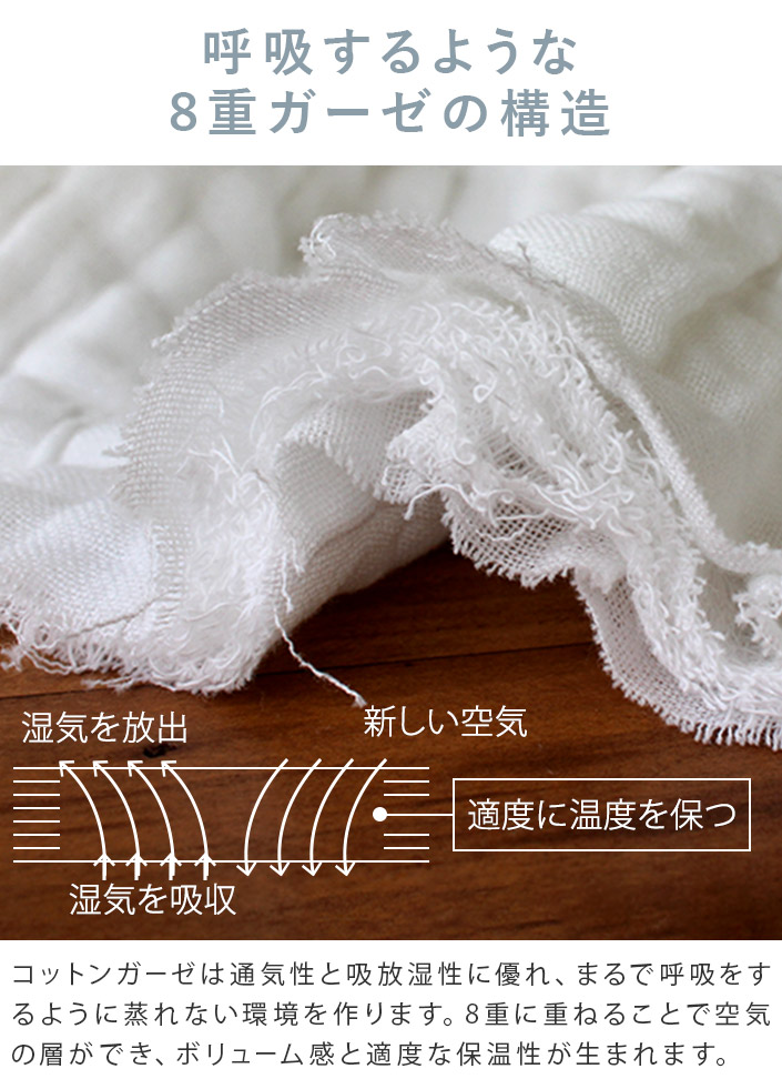 ガーゼが8重も重なってるから空気の層が生まれてふわふわ。