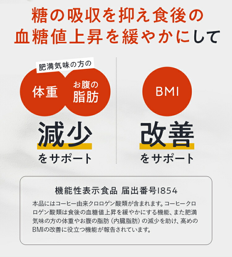 肥満気味の方の体重・お腹の脂肪※の減少サポート、BMI改善サポートをしてくれるんだけれども、