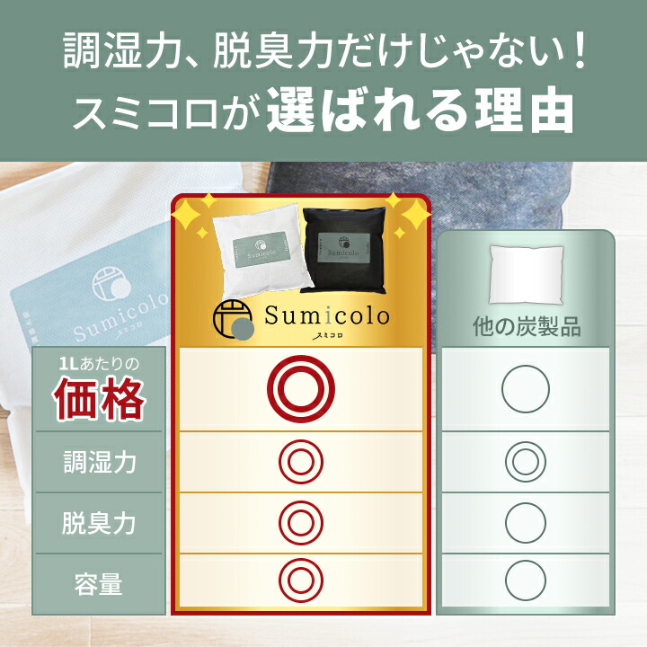 スミコロは1リットルあたりの価格と調湿力、脱臭力では負けません!!