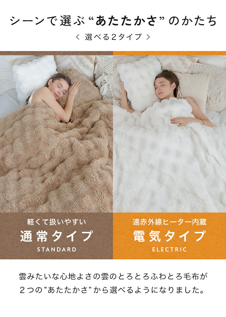 しかも電気毛布タイプと、通常の毛布タイプと2種類あって好きな方選べるねん!