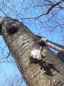 さかのぼれば…白とピンクの花を咲かせる梅の木