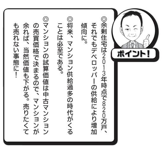 そして、余剰住宅が増えるということは、当然供給よりも需要のほうが減っていくことになるわけで、これからの10〜20年で、需給のバランスが大きく崩れてくることは目に見えています。今後、一部の限られた地域を除いて、中古マンションが供給過多になることは紛れもない事実なのです。