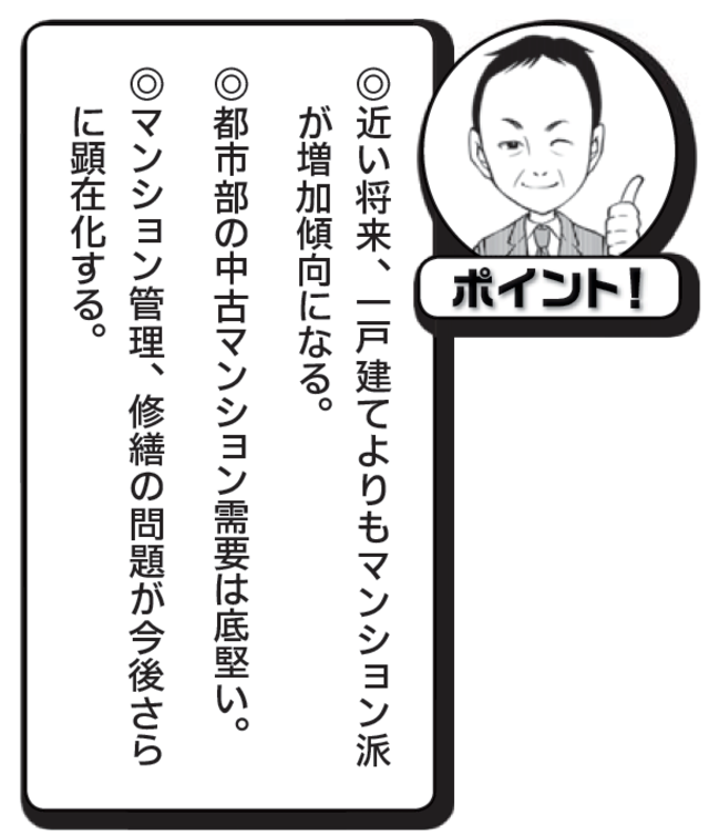 今後は都心や大都市の中心地と郊外とで、土地の価格差がどんどん広がっていくと考えられます。いい換えれば、首都圏や大都市圏などの都市部で、特にその中心地域においては、マンションの中古需要は底堅くあるといえます。