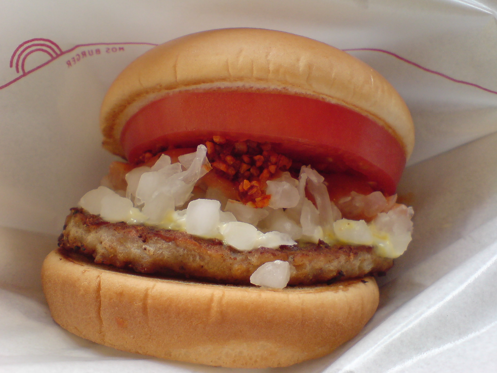 まずは、出勤前にいつも見ているスッキリ!で紹介していた、スッキリ!×モス・バーガーのざくざくラー油バーガーを食べて来ました。↓