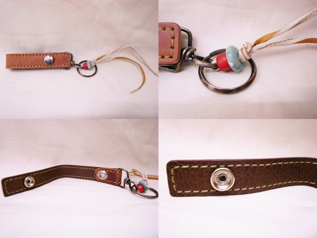 キーホルダーとウォレットに付くケースの紐に、天然ターコイズとアンティークビーズを使用しています。