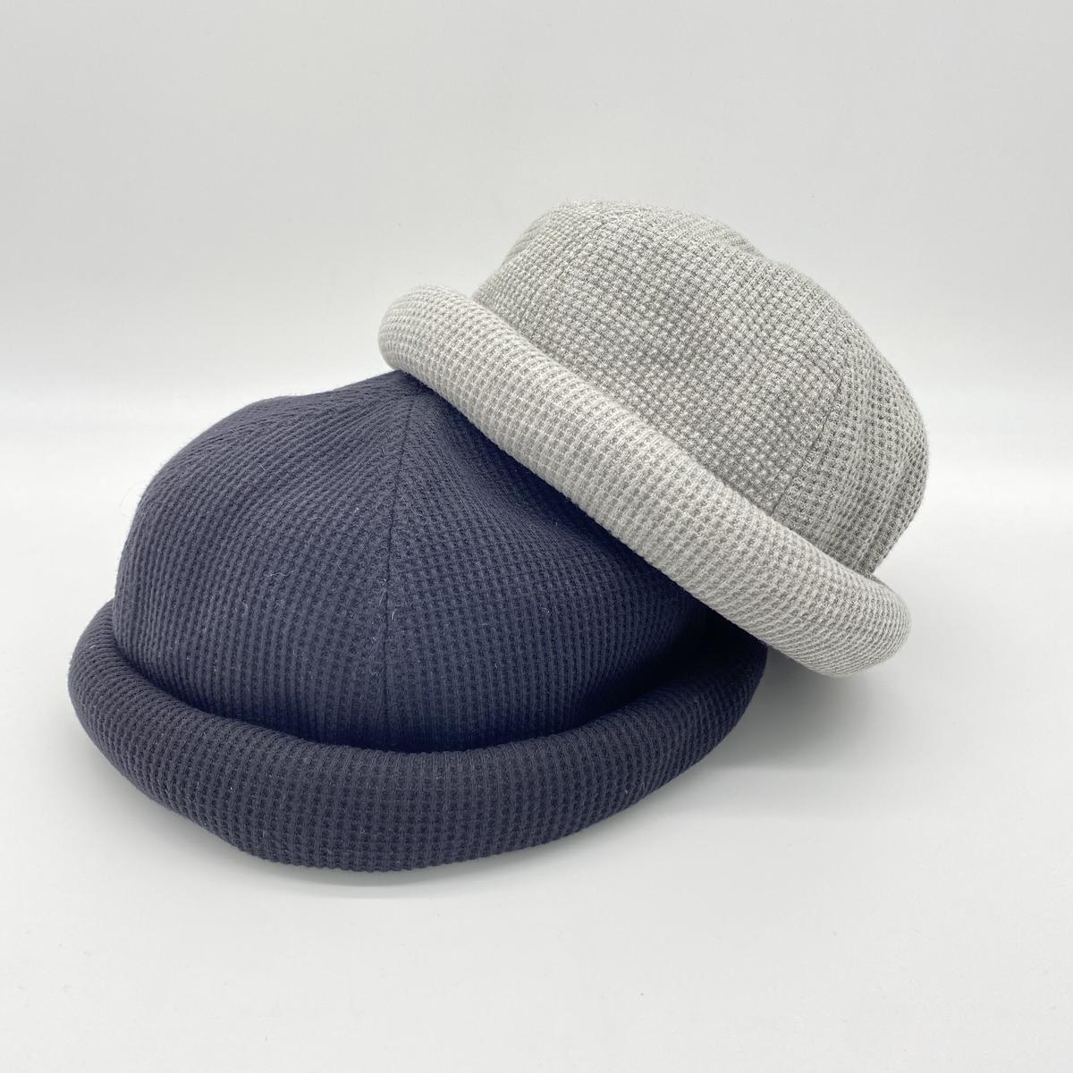 ワッフル生地で仕上げたロールキャップ。