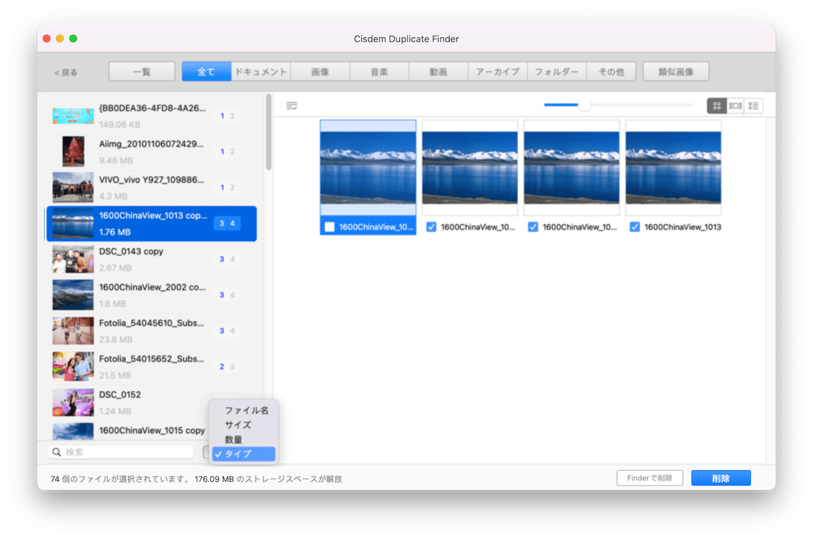 Cisdem Duplicate Finderは、優先的にA画像とAA画像を重複画像として検出し、「画像」タブに表示します。