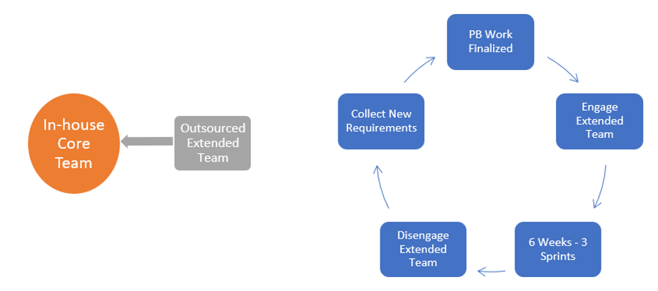 拡張チーム(スタッフオーギュメントとも呼ばれる)は、ソフトウェア開発パラダイムにおける確実な手法です。開発チームの大部分は社内の開発者ですが、多くのITアウトソーシング社員が彼らを支援します。両チームは、スキルセットや知識のギャップを埋めるために協力し合います。