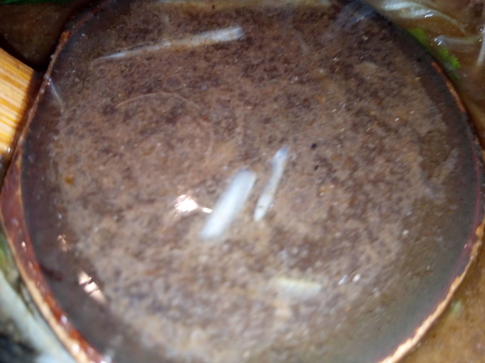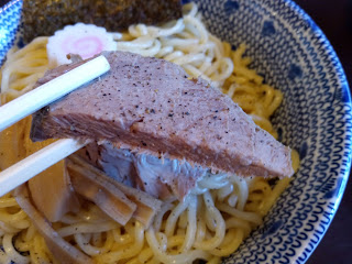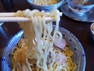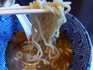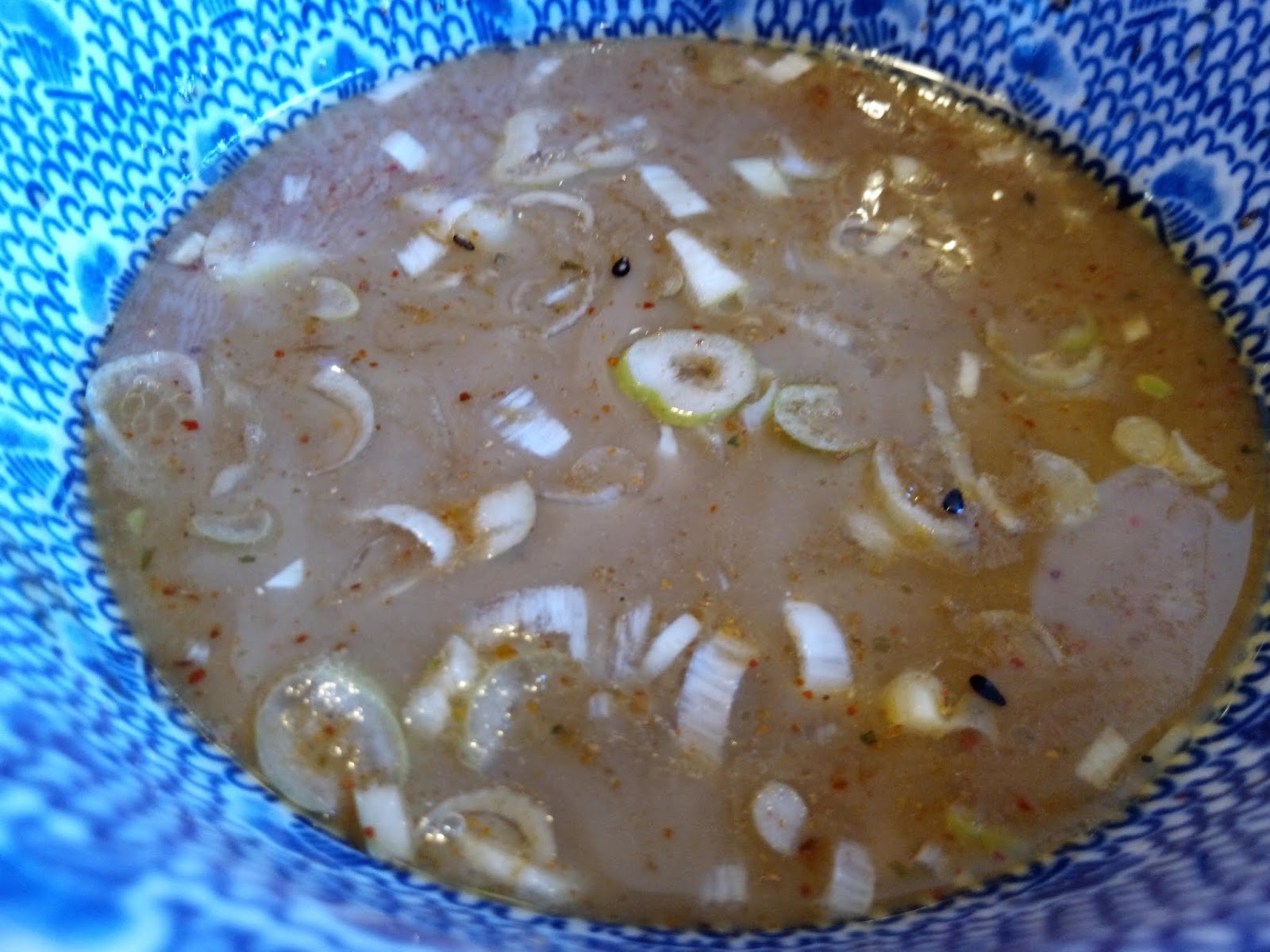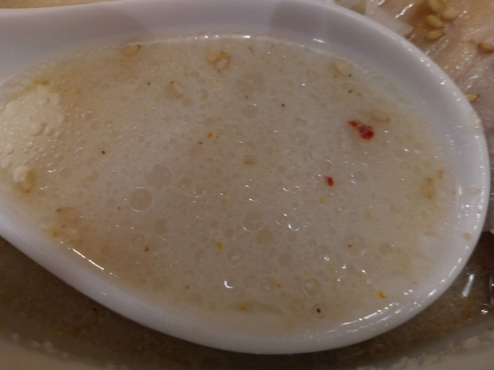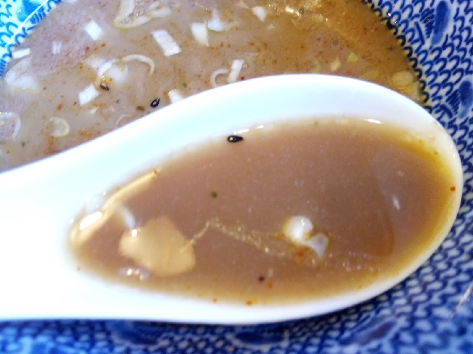 蓮華ですくうと、特に濃厚というタイプではない軽いつけ汁味わうと、意外とあっさりとしていて、かなり塩分強めな感じです