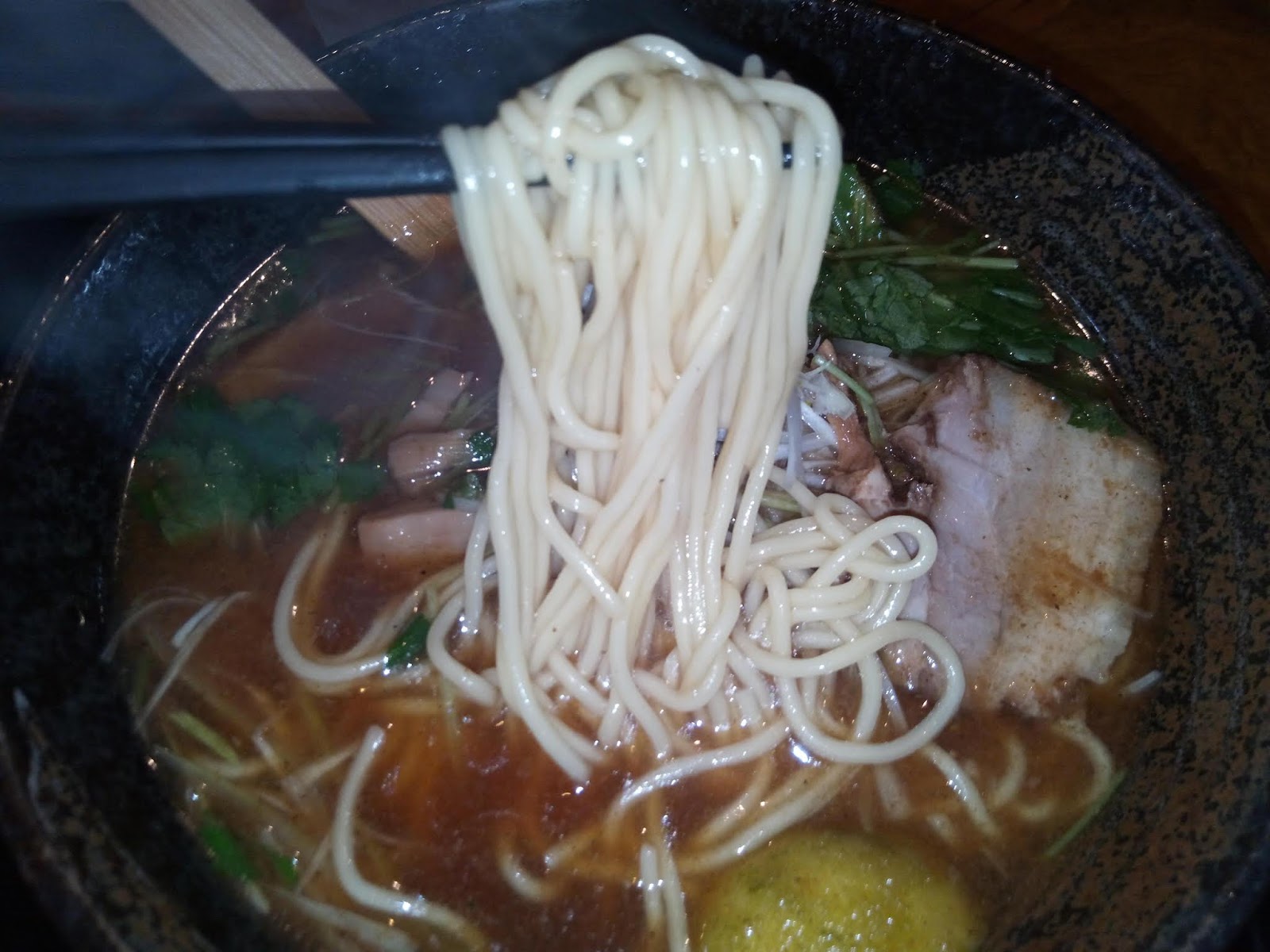 麺も、いつもの中細麺しっかりとスープを絡め上げてくれる完成されたラーメンしかしながら、途中から青唐辛子がスープの中に顔を出し、これが辛い!!舌にしみ込んで内側から刺すような辛さですこれは、独特ですね、青唐辛子の破壊力、侮れません一瞬にして汗だくになりましたが、決して食べられないような激辛ではなく、心地よいあっさりとした汗を拭きながら完食一度は試してみる価値ありのラーメンでした