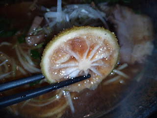 凄い!ラーメンの中に、二つに切ったゆずが丸ごと1個分入っています