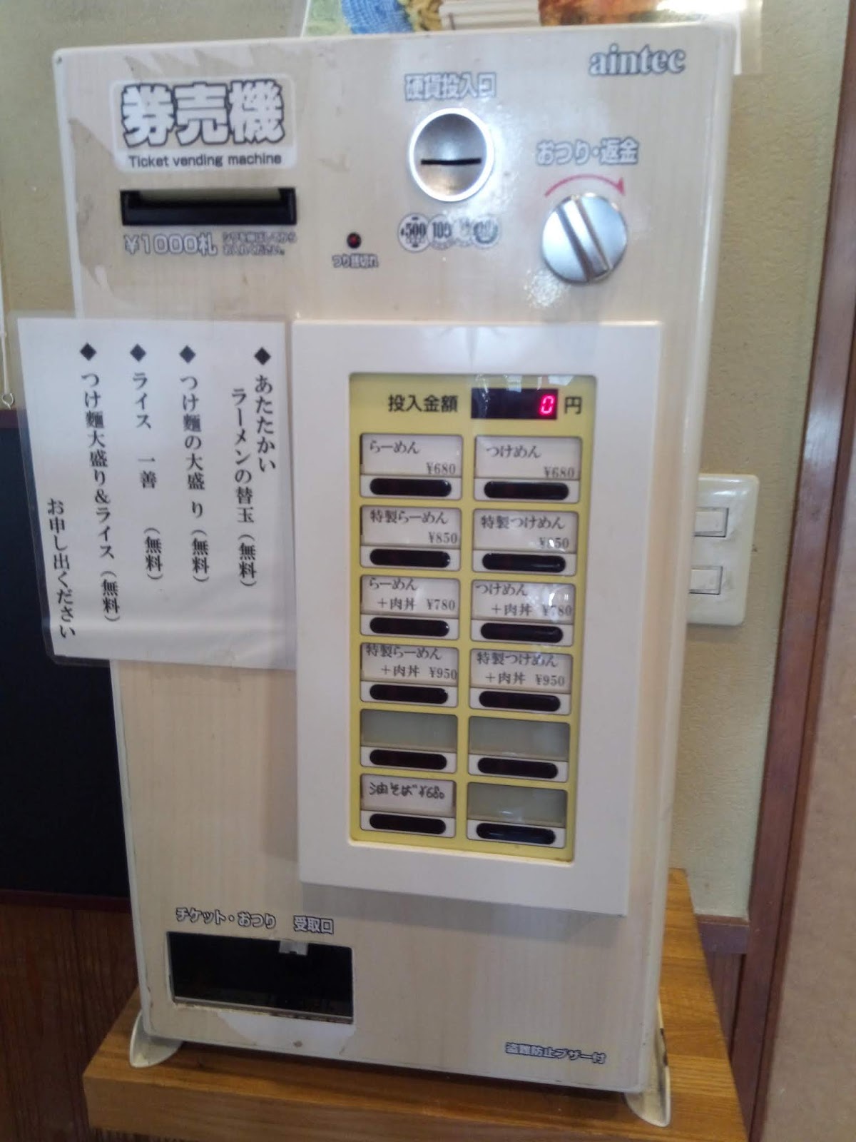 入ってすぐに券売機がありますつけ麺、ラーメン、油そばの三種類を提供していますが、特徴的なのは大盛り、替え玉、ライスが無料な事と、更に、タベログのクーポンで、肉丼までもが無料サービスになる事でした(期間限定)つけめん 680円を選択し、座敷の席に着いて店内を見回すと、団体さんで何処かに行ったような写真がカウンターの上にズラーッと貼ってあります何かの活動をされているようです