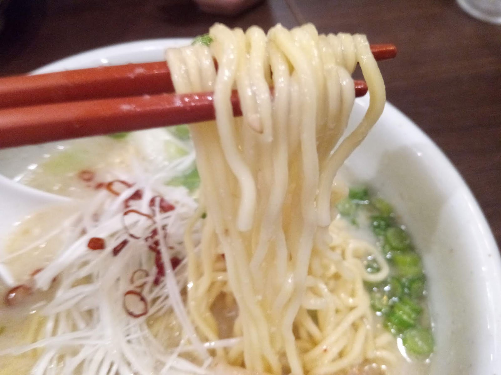 麺は、中太の丸いストレート麺で、かなりモチモチのつるつるです