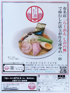 待っている間に、次回のクーポン券ですと差し出されたチラシを拝見しているとらーめん しおの風で修業した店主が作るらーめんという事で、期待に胸が膨らみます