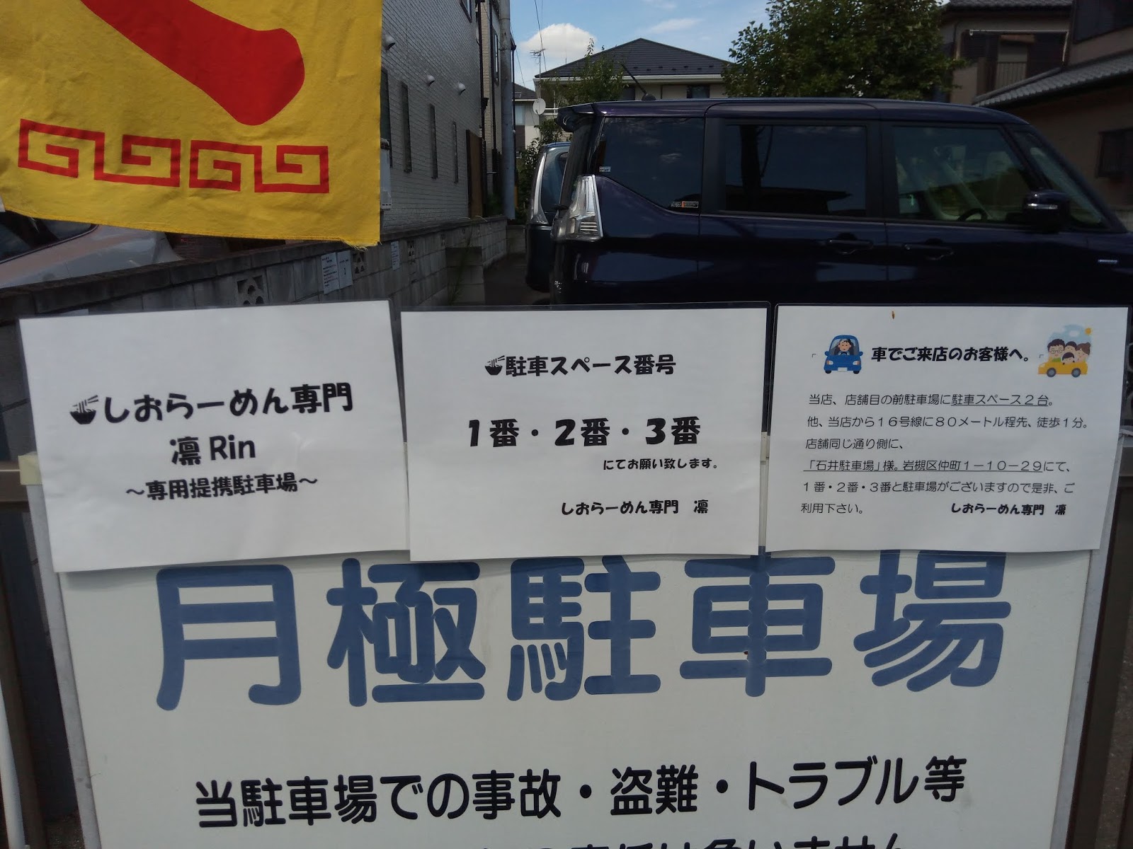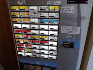 駐車場は店舗前に2台、店舗から50mほど離れた場所に3台確保されています店内はテーブル席中心で、かなりのキャパがありそうです入ってすぐに券売機がありまして