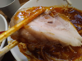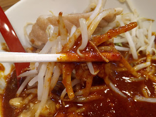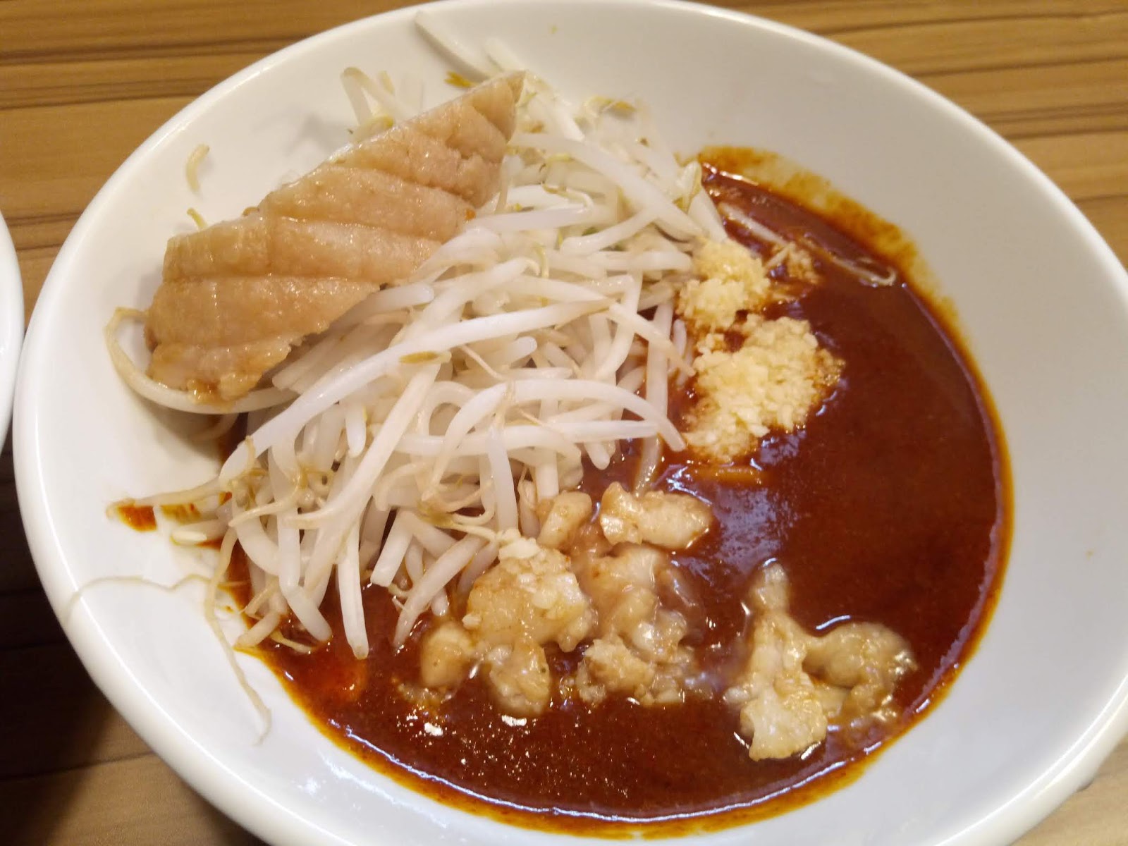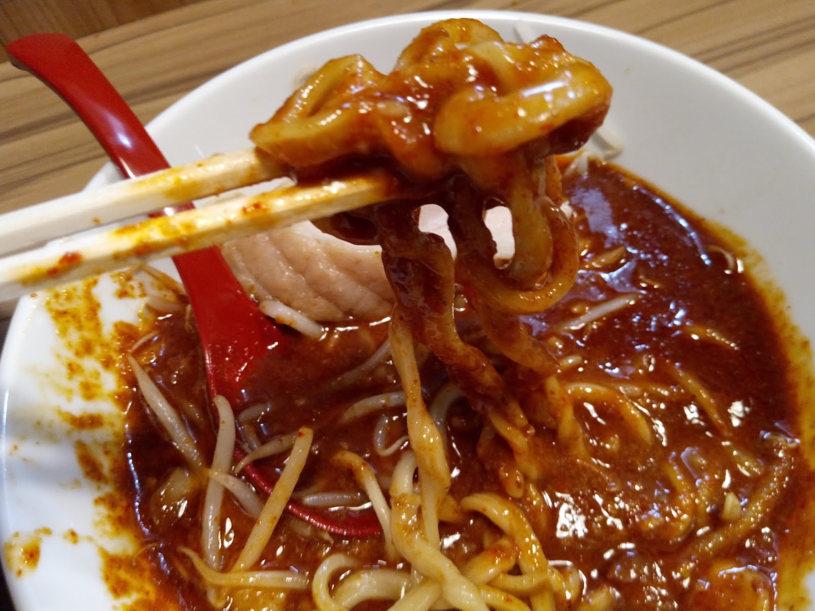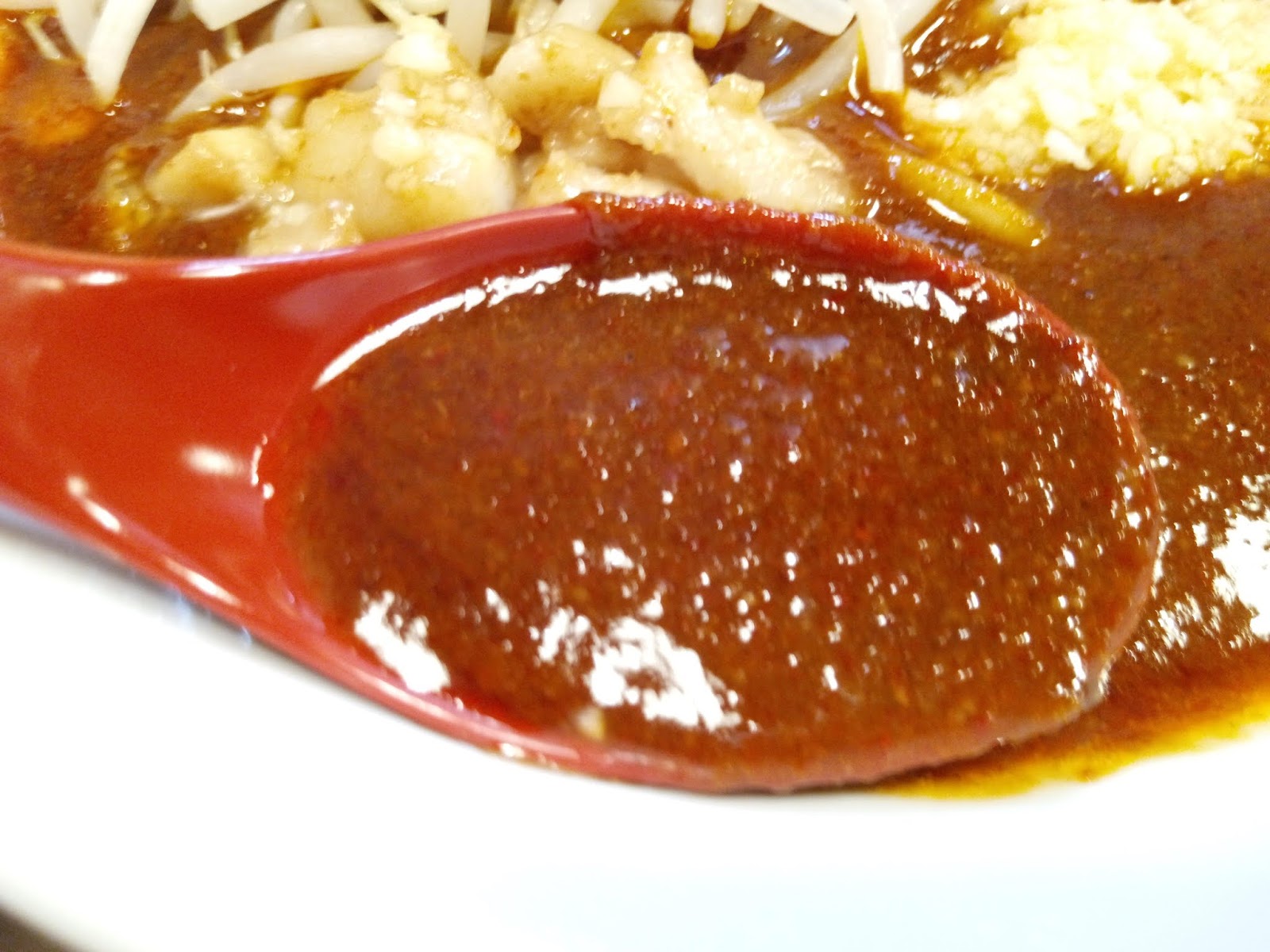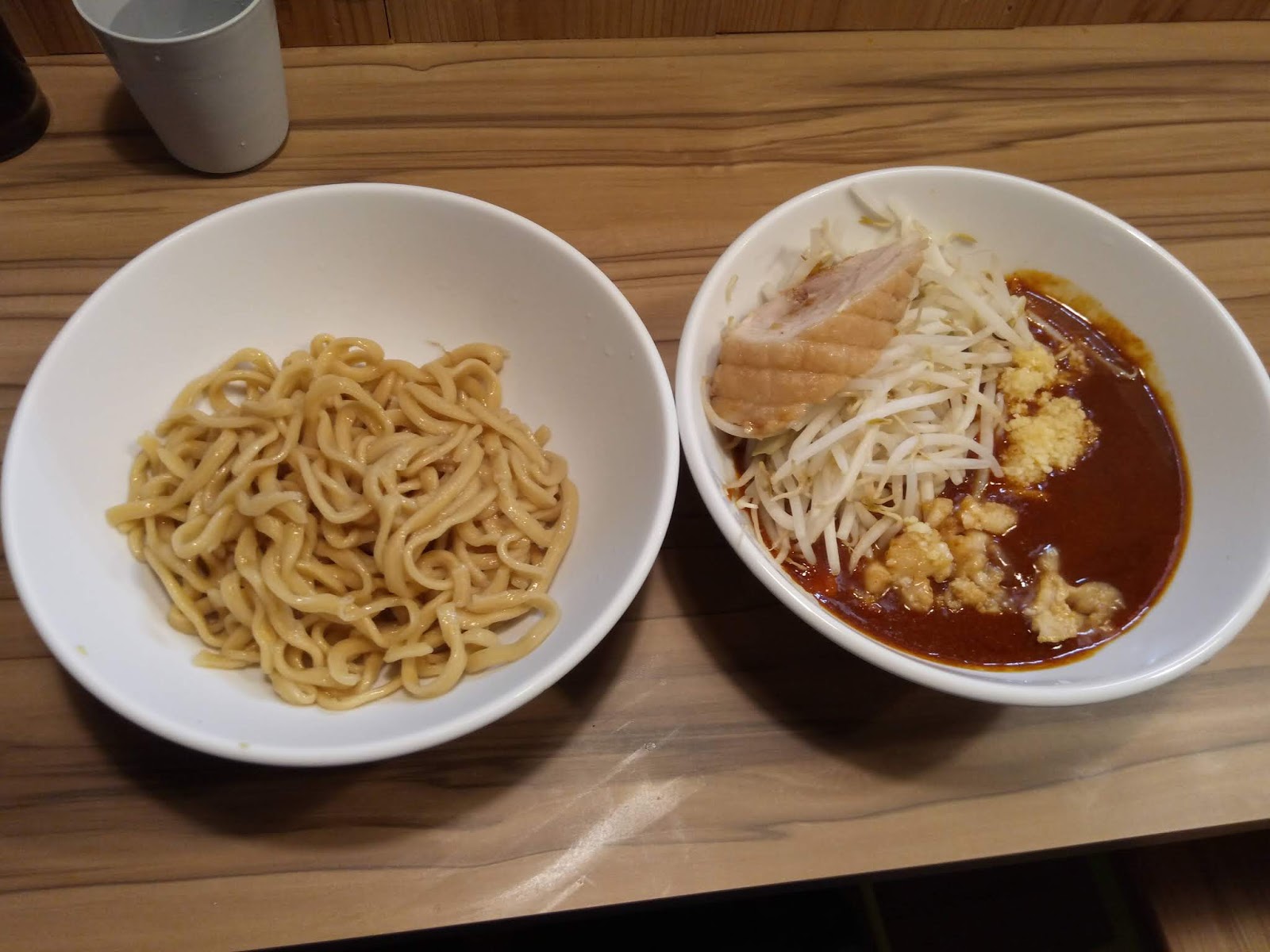 おー、直感的にはそれほど辛くなさそうな、ドス赤いつけ汁