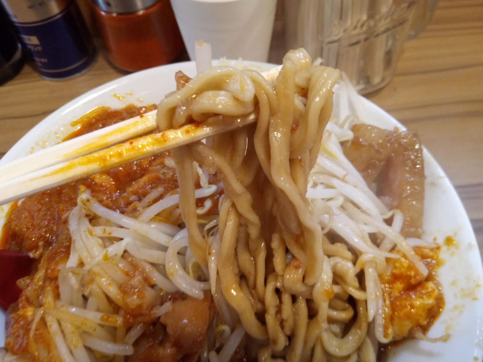 ゴワゴワワシワシの麺は。それだけでこのラーメンを象徴するようなインパクトです
