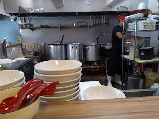麺少な目でお願いし、大きな寸胴を眺めながら待つ事10分にんにく入れますか?と聞かれたので