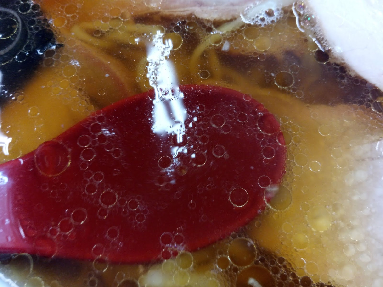 途中、テーブル上の玉ねぎを入れてシャキシャキの食感を楽しみながら、スープをグビグビ飲んで完食です