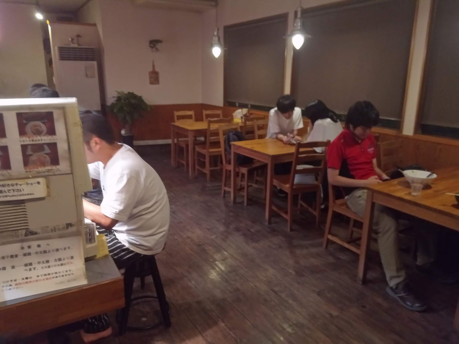 店内は、カウンターと、4人掛けのテーブル席が3つ。満席です