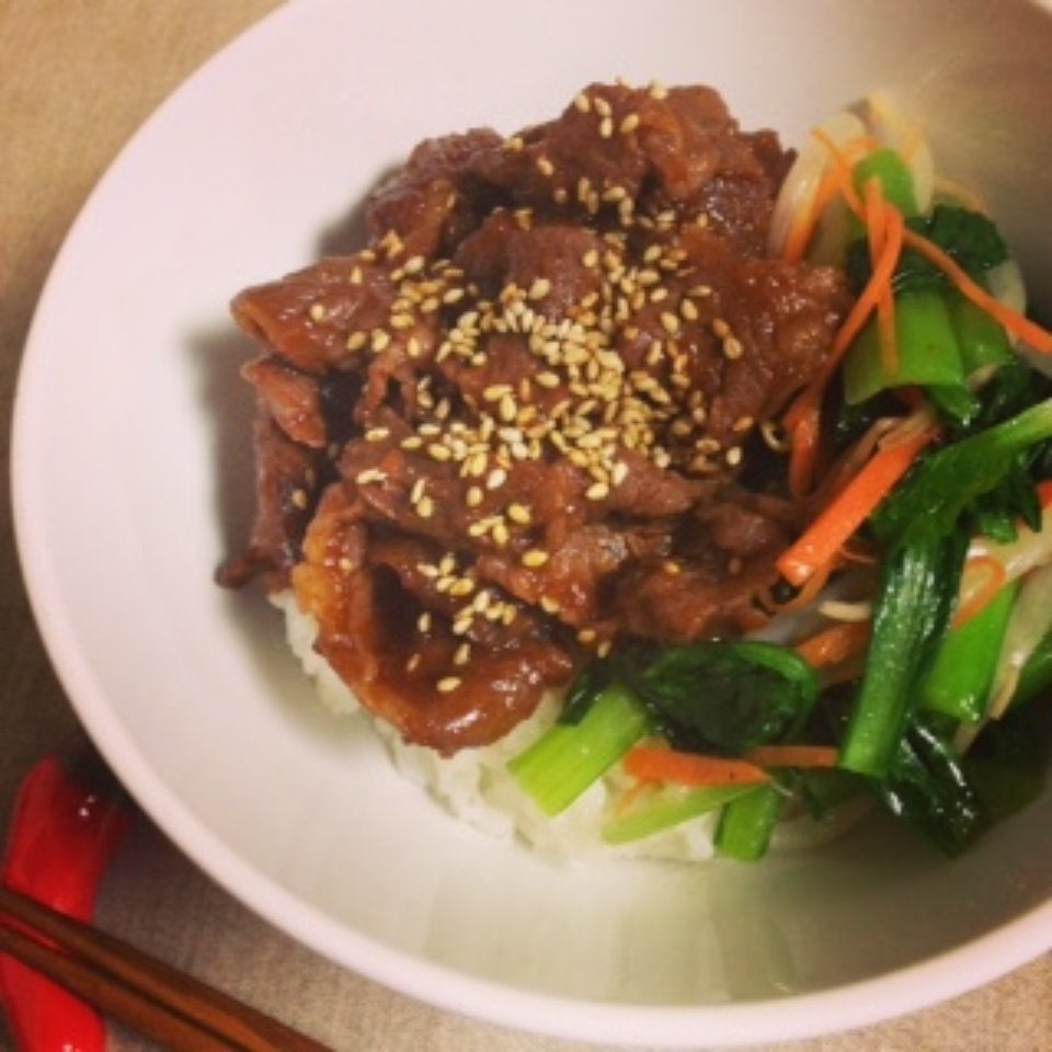 *ちょっと甘めの焼肉だれとワンボウルナムルで♪焼肉ビビンバ丼 レシピ*