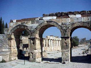 バムッカレではまず、「ヒエラポリス」(左の写真)を観光しました。その後、「石灰棚」を観光しました。