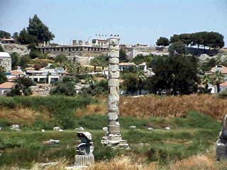 ちなみにそのはがきは、我々が日本に帰国後に無事届きました。「聖母マリアの家」を観光した後、セルチェクの街で昼食を食べ、その後、現在ではたった1本だけの柱が残っている「アルテミス神殿跡」(左下の写真)を見学しました。また、同じ位置からですが、「聖ヨハネ教会」や「東ローマ時代の城塞」など(右下の写真)も見ることが出来ました。