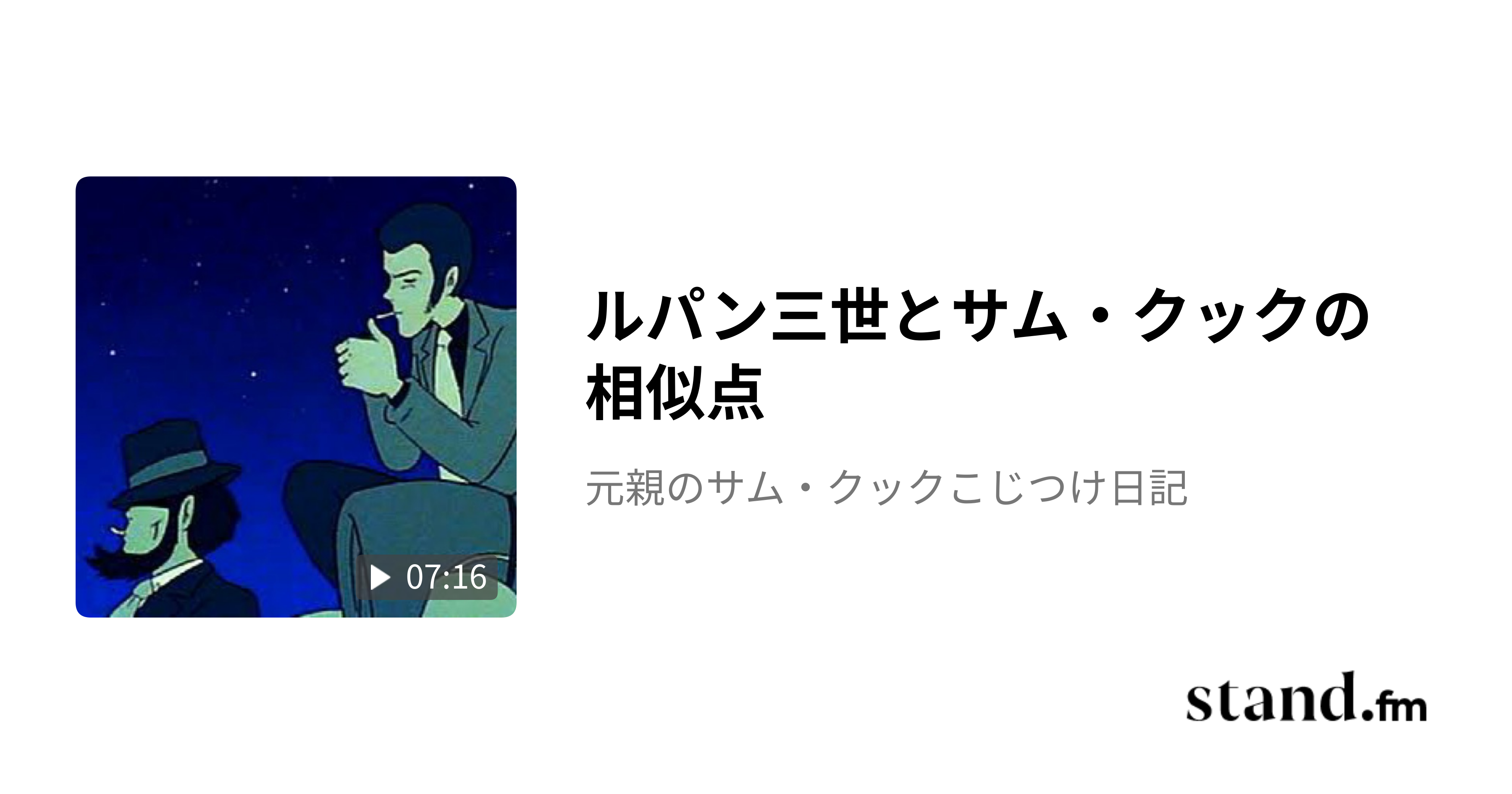ルパン三世とサム・クックの相似点サム・クックってルパン三世に似てるところがあるなぁって。どちらも大好きです。ルパン三世とサム・クックの相似点 - 元親のサム・クックこじつけ日記 | stand.fm#ルパン三世 #必殺仕事人 #犬神家の一族 #美味しんぼ #サム・クック #カリオストロの城stand.fm