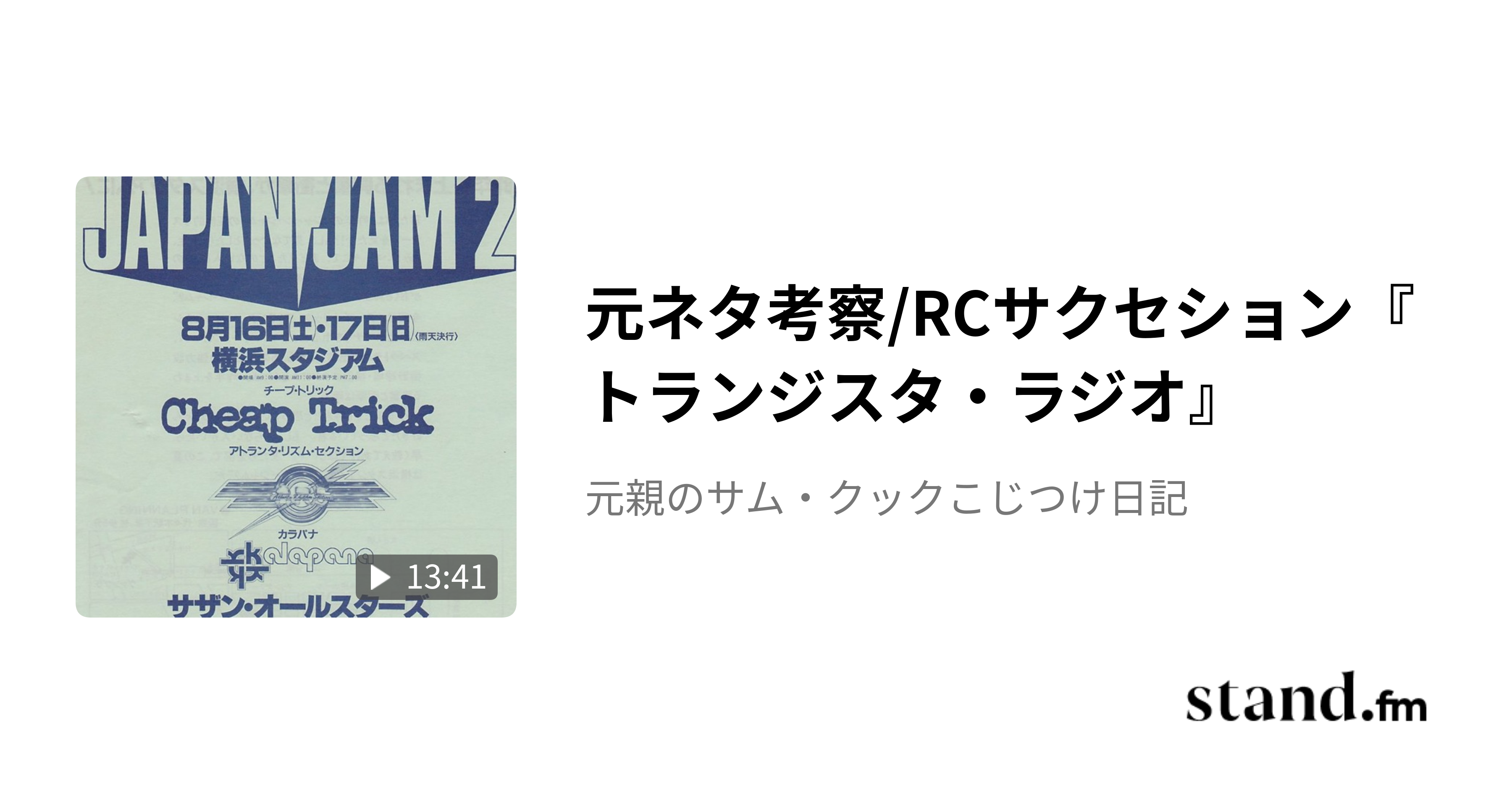 元ネタ考察/RCサクセション『トランジスタ・ラジオ』 - 元親のサム・クックこじつけ日記 | stand.fm#RCサクセション #忌野清志郎 #トランジスタラジオ #チープトリック #サレンダー #サザンオールスターズstand.fm