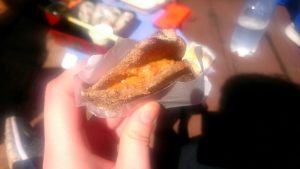 お寺で ドーナツと
