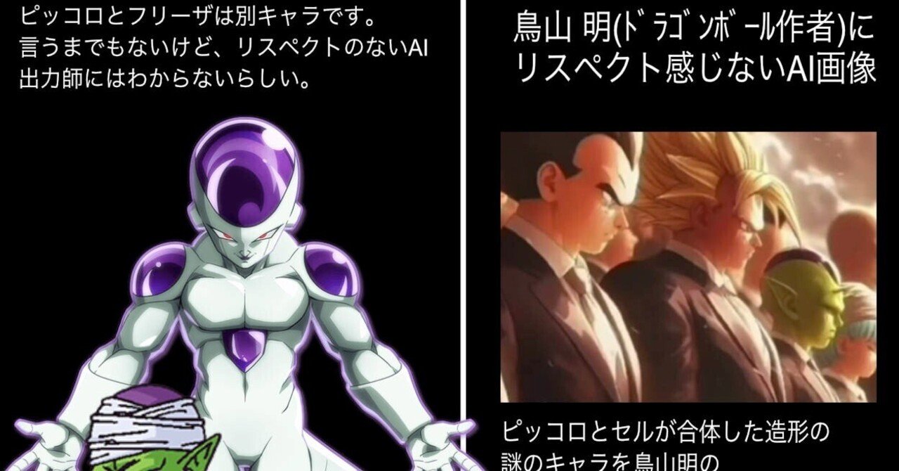 noteの記事で「鳥山明追悼のドラゴンボールAI画像の問題点【インプレ稼ぎのためにキャラ造形無視】」というタイトルの記事がありました。(記事作者:「タンサン」さん)