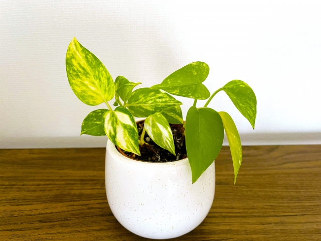 こちらはポトスという植物です。枯れにくくて初心者でも育てやすいことで有名です。週1で水やりする程度の手間で済みます。どんどん成長していくの見ていて楽しいです。100円ショップで300円くらいで売っているのを購入して、3年くらい経ちますが現在も現役ですw