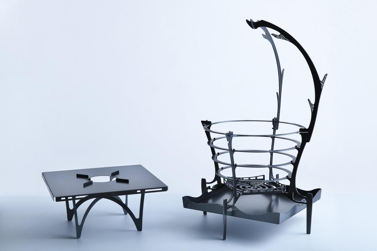 TRIPATH PRODUCTS GURU GURU FIRE L / グルグルファイヤー Lすべてのパーツが平面の鉄板からレーザーで切り出されており、ボックスの中にコンパクトに収納可能。収納ボックスの上蓋がサイドテーブルに、収納箱本体は焚火台の灰受けとして使用します。組立は簡単&工具不要、カチャカチャと簡単な立体パズルを組み立てていく感覚。鹿のツノのような形状のパーツは、直接ケトルや飯盒、ダッジオーブンを吊り下げることが出来る耐久・耐荷…tateisukanna.stores.jp