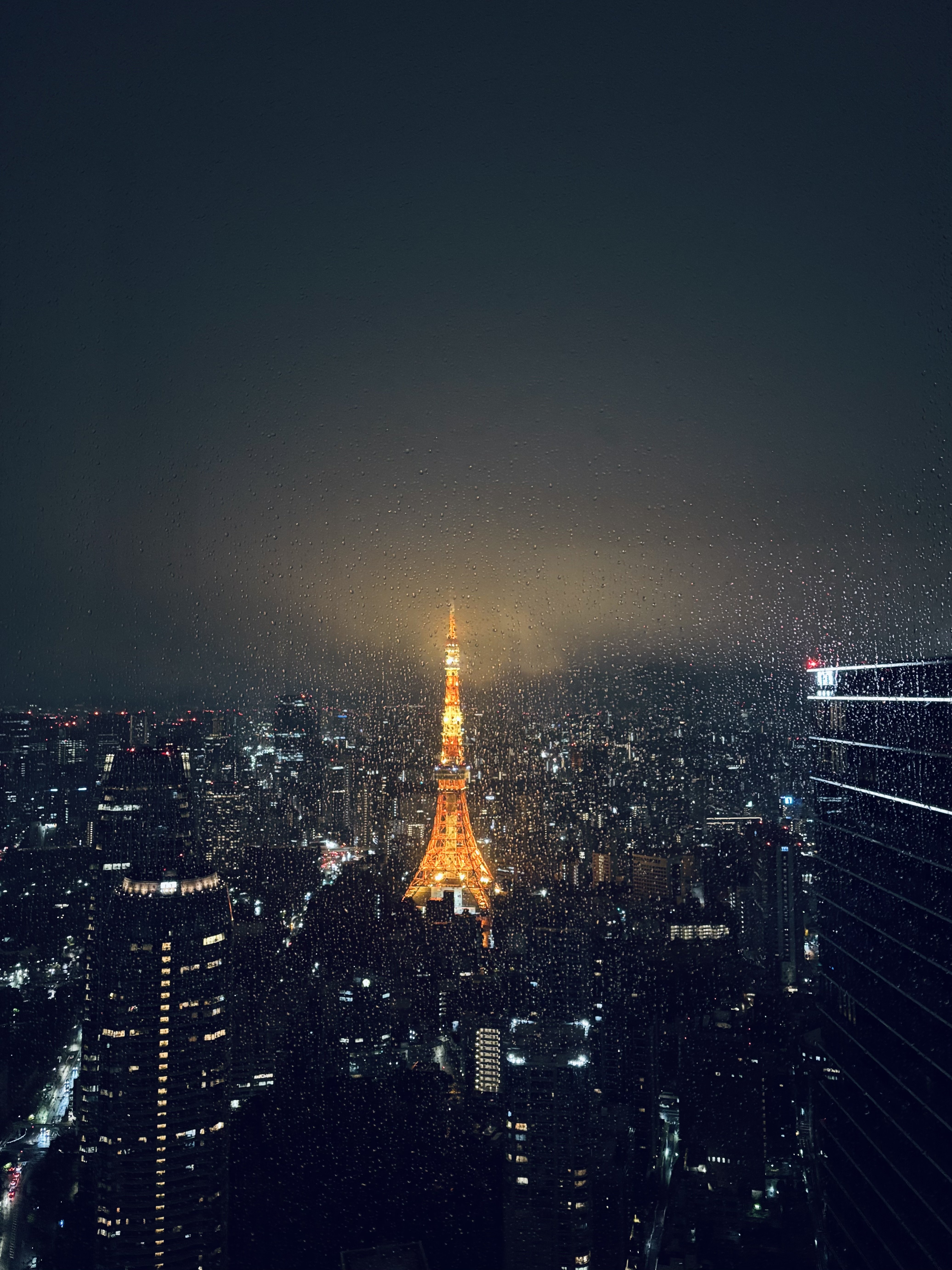 雨粒のヴェール越し浮かび上がる東京タワーは、夜空にとけこんでしまいそうで、