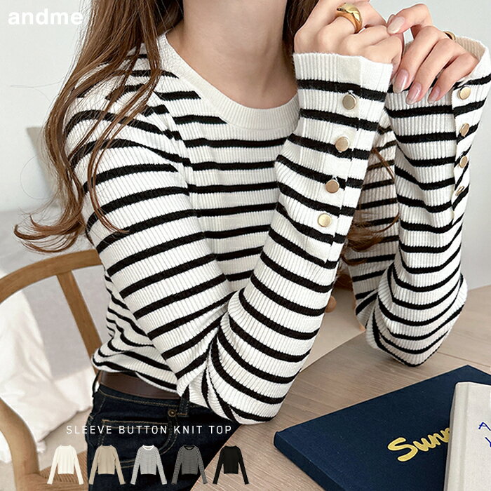 【宅配便A】【一部予約】無地 ボーダー 金ボタン付き 長袖 リブ ニット トップス レディース ニットトップス セーター プルオーバー クルーネック 体型カバー 着まわし トラッド きれいめ 上品 トレンド オフィス 秋冬 春 秋 冬【メール便NG】楽天市場${EVENT_LABEL_01_TEXT}