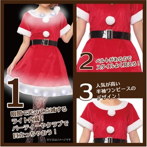 【クリスマスコスプレ 衣装】 光るツーピースサンタ