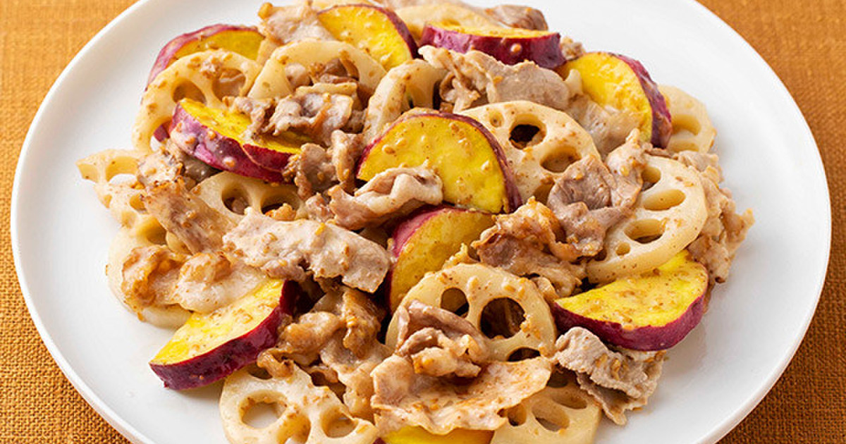 さつまいもとれんこんと豚肉の深ごま炒め
