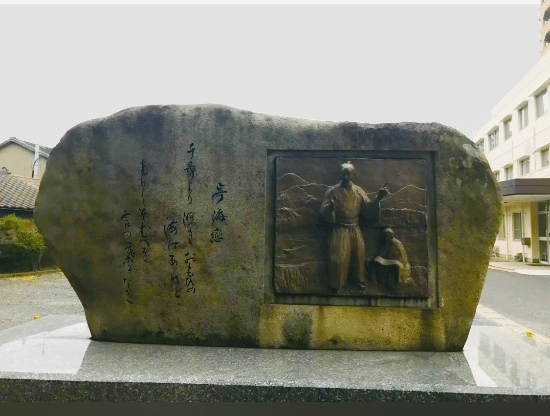 お役人に自分の信仰を話す隼人の姿と、隼人の詠んだ一首が彫られていると。