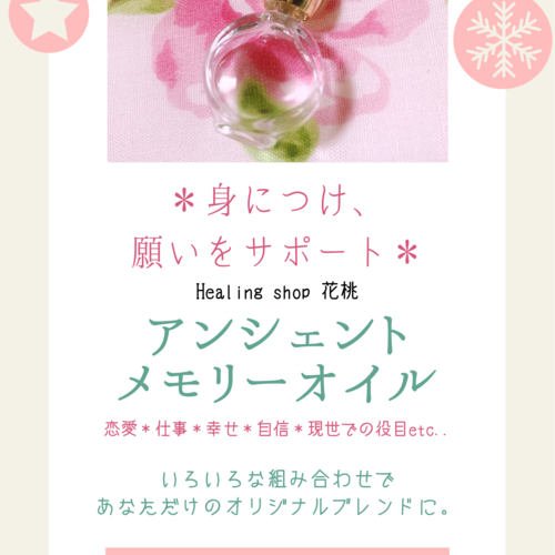 当店では、ペンダントとしても持ち歩くことが可能な仕様の小瓶にアンシェントメモリーオイルを入れています。