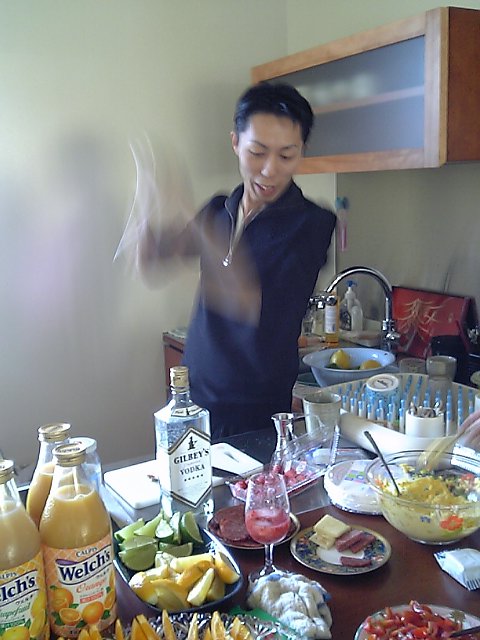 Mr.N氏、シェーカーリハ皆さまより先に何ですが・・いえお出しするメニューを確かめておかないと、、、いろいろ理由を付けつつ要は飲みながら準備したい!というのがココア堂の本音。Mr.N氏、聞きしにまさる腕前!いちごたっぷりのウォッカカクテル、最高~~!