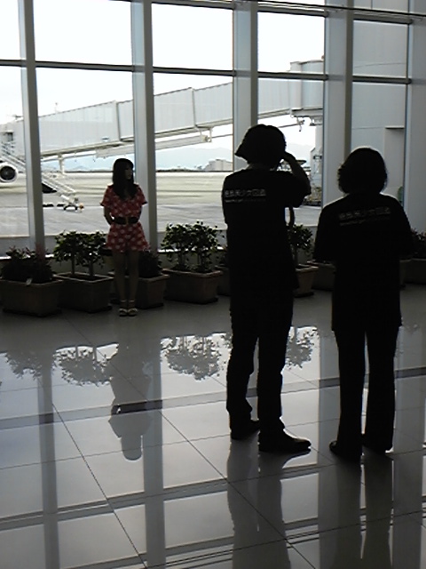 一階のホールからは、ちょうど飛行機の鼻先が見える