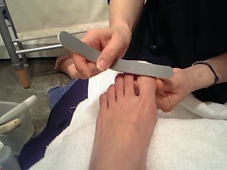続いて、ツメのお手入れ。担当してくれたのは、湯浅美保さんです。一本づつ丁寧にやすりで磨いたり、角質を取ったり、かかとのお手入れをしてくれます。
